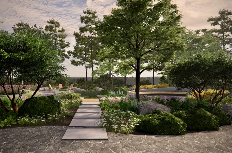 The homeowners recognized the presence of unused space on their property, and the incomplete state of the yard was limiting its functionality. Through thoughtful planning, the unfinished backyard was reimagined as a tranquil woodland oasis